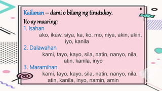 Kaantasan ng Pang-uri 6 worksheets - 3. Sige isang pangungusap gamit ang mga salitang panghalip panao na kami tayo kayo sila at ako - 20618130. Tukuyin ang angkop na panghalip panao sa pangungusap.